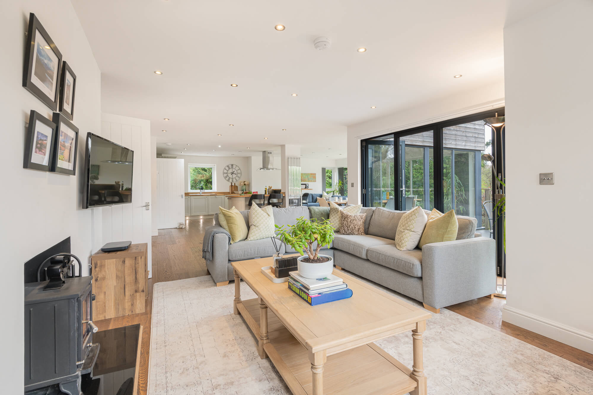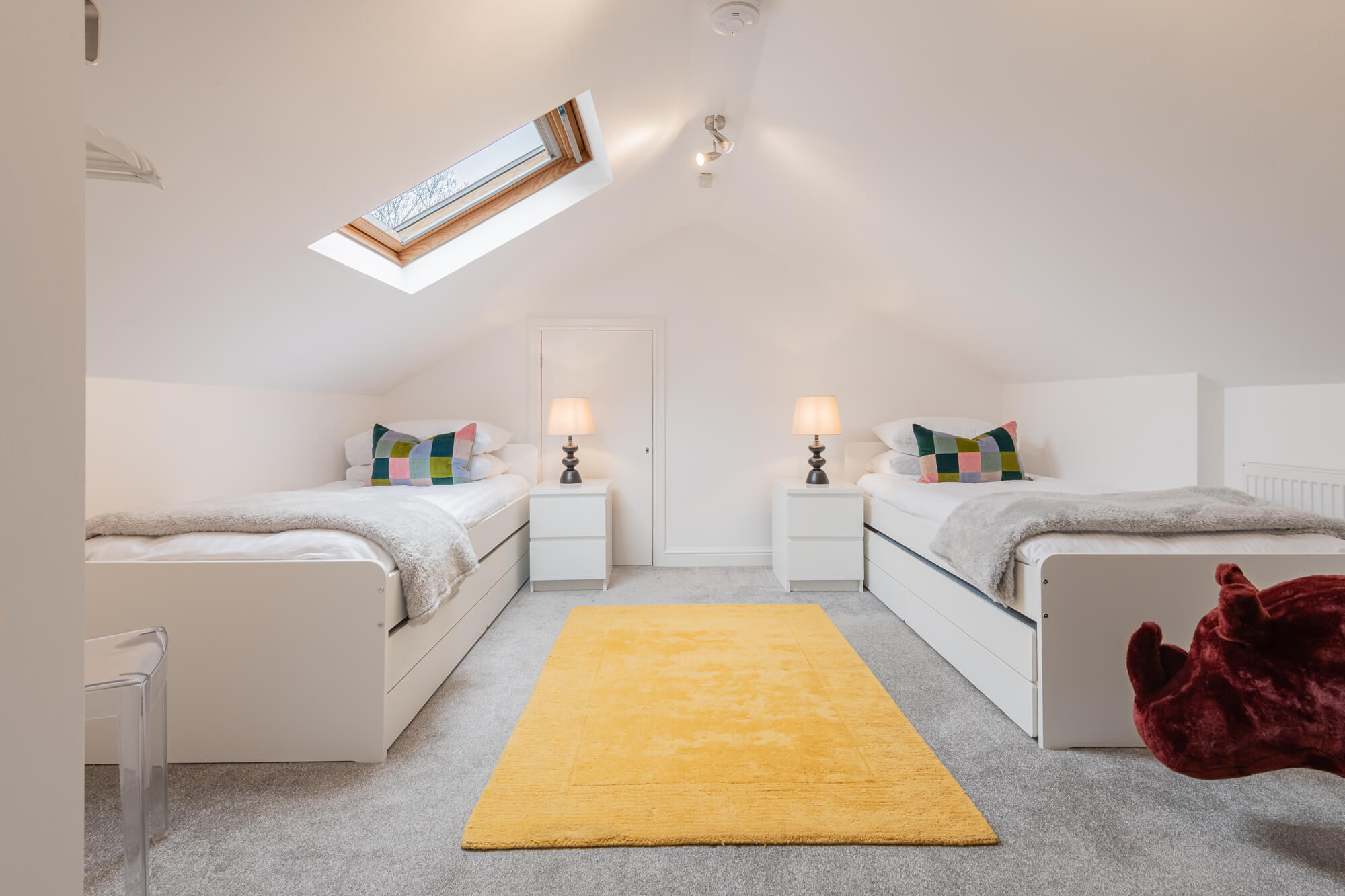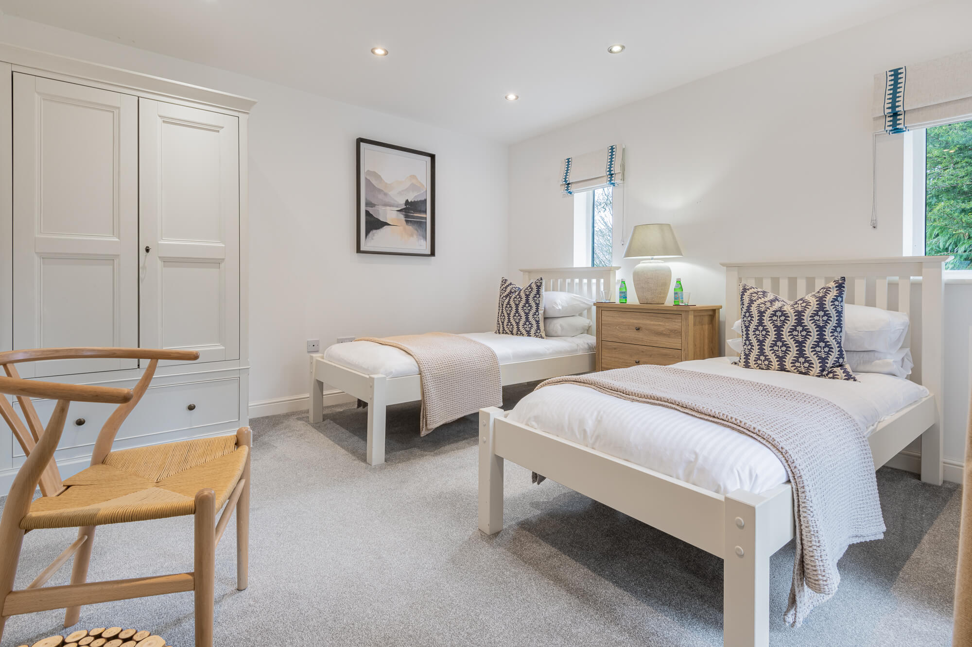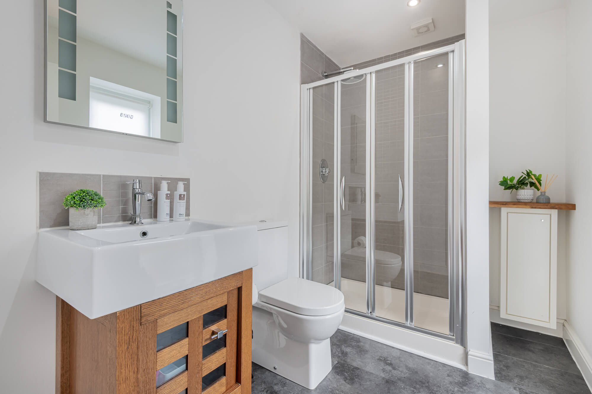 Two separate seating areas allow the house to unfold around you—one centred around the warmth of the woodburner, the other ideal for quieter moments, conversation or settling in to watch a film. A well-appointed family bathroom, alongside the en-suites, ensures everything works comfortably for larger groups.