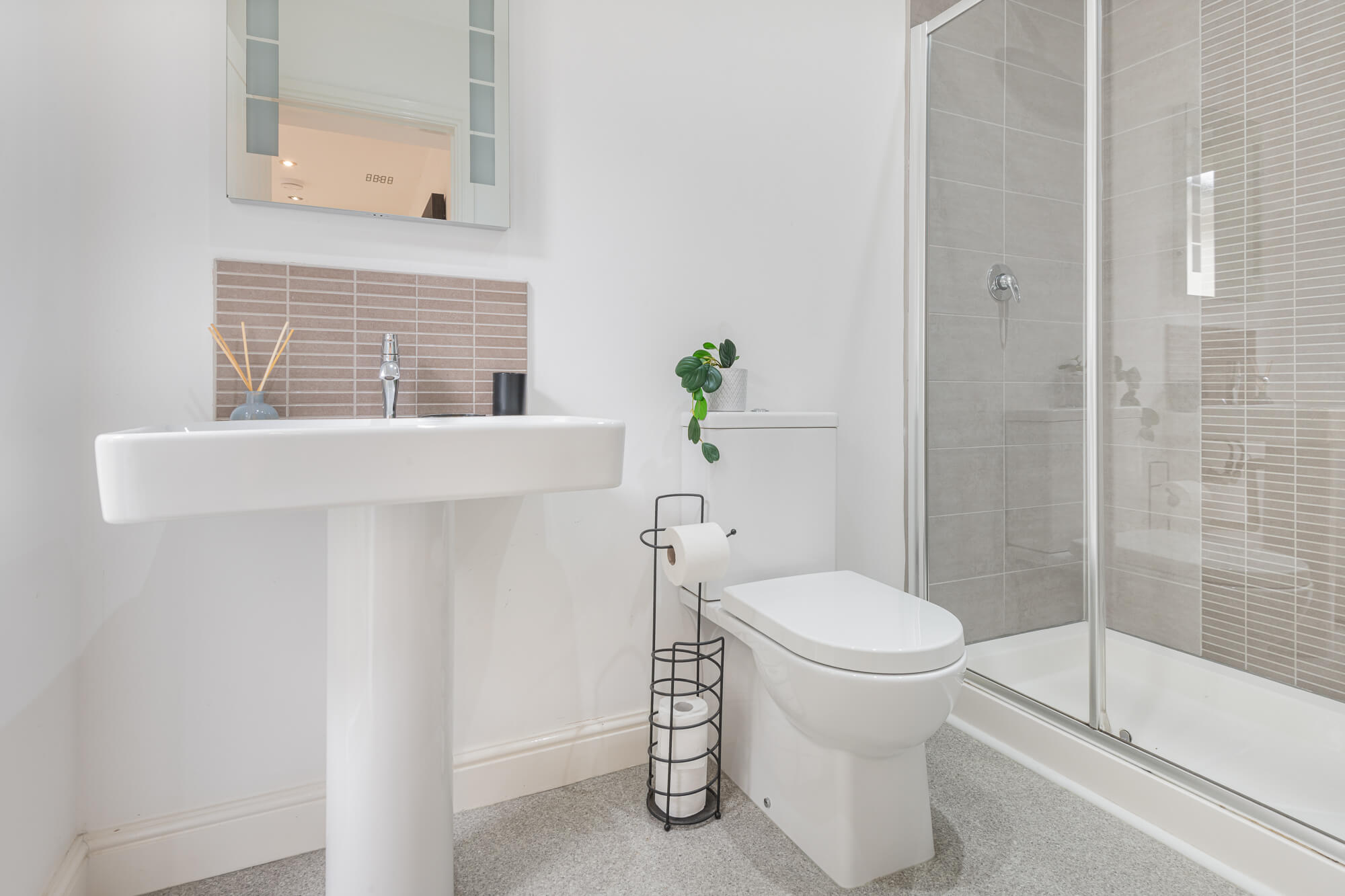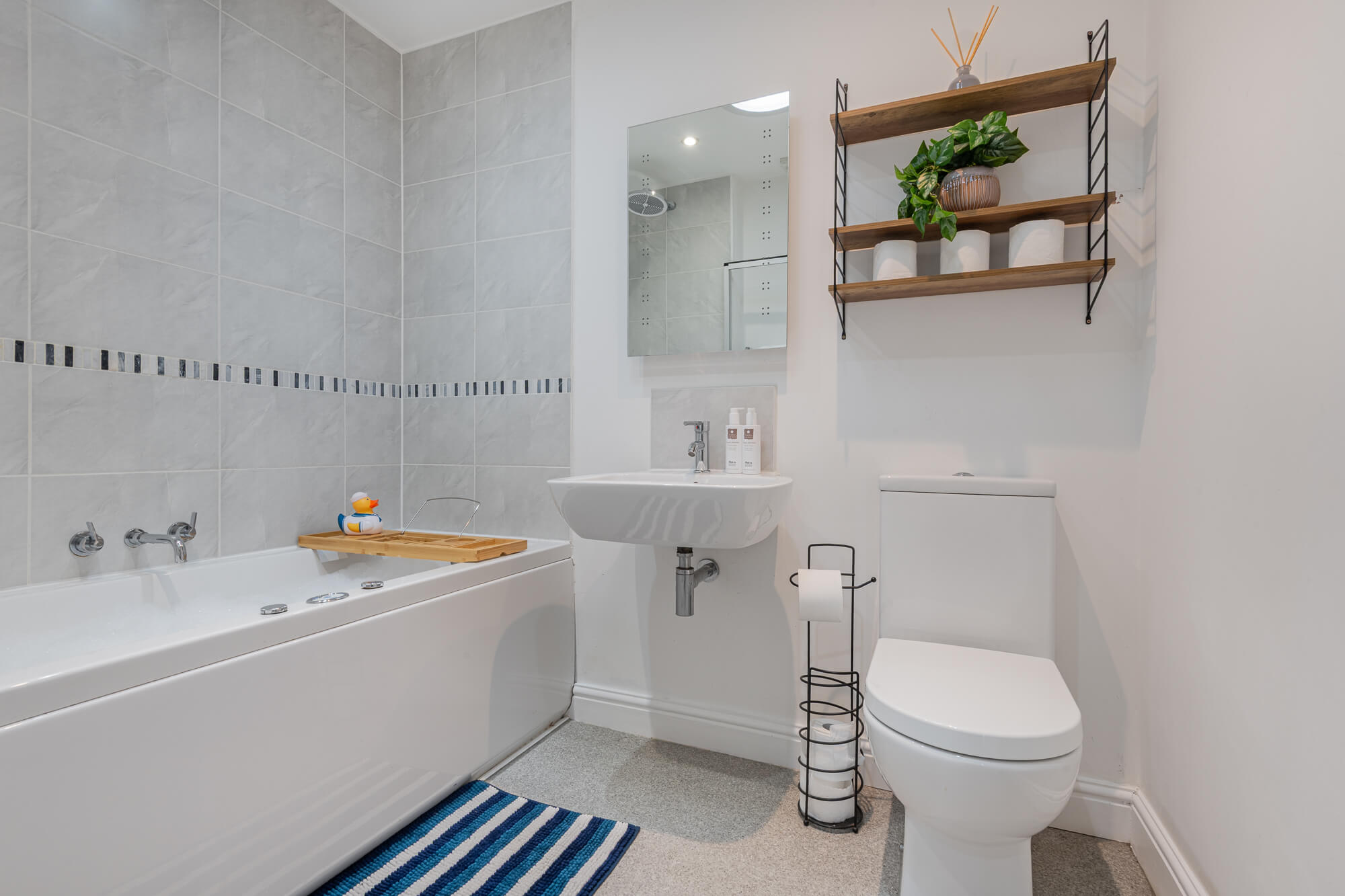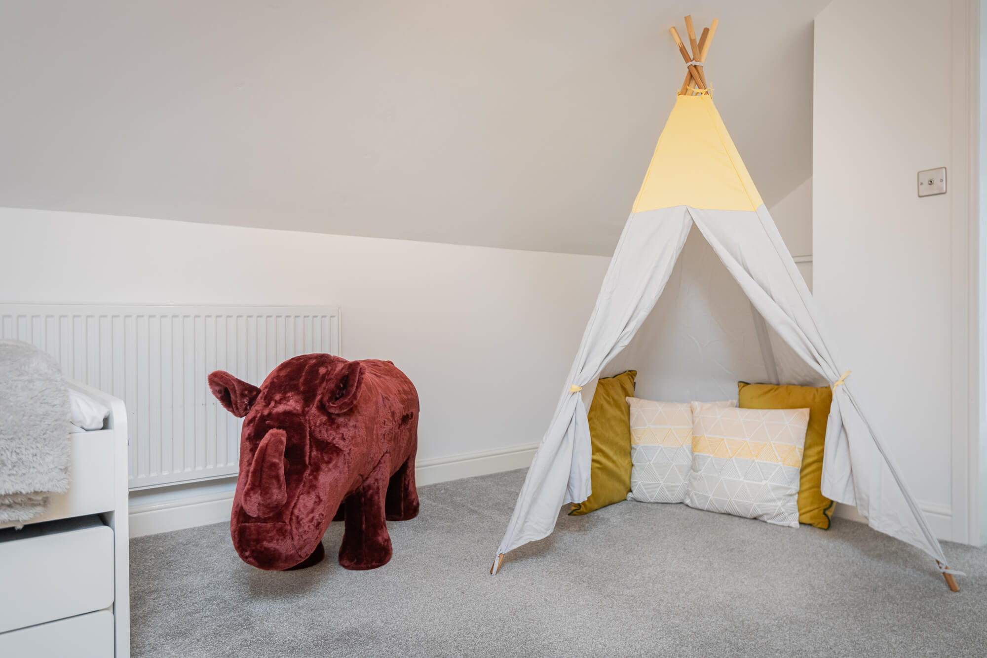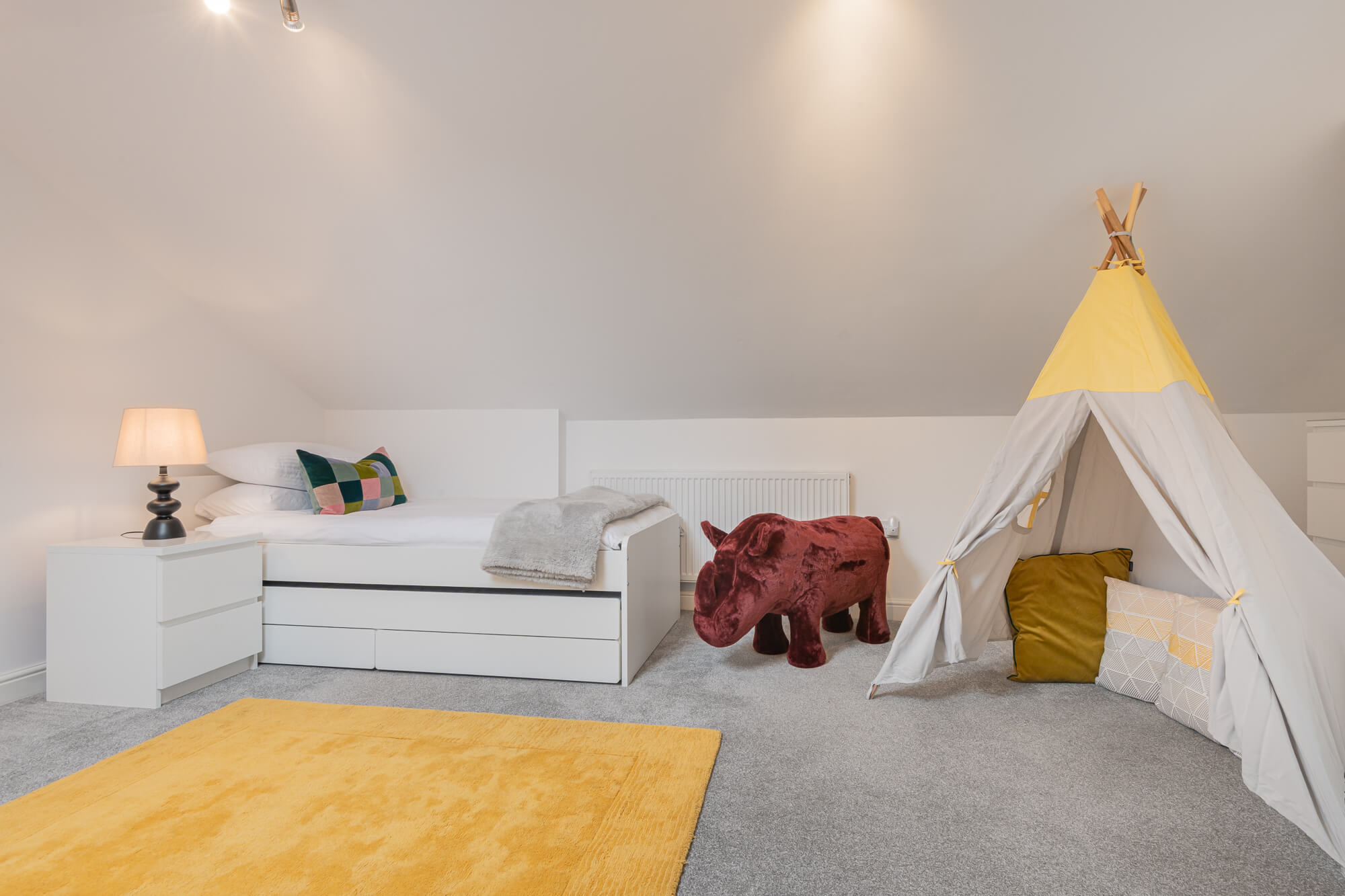 Two separate seating areas allow the house to unfold around you—one centred around the warmth of the woodburner, the other ideal for quieter moments, conversation or settling in to watch a film. A well-appointed family bathroom, alongside the en-suites, ensures everything works comfortably for larger groups.