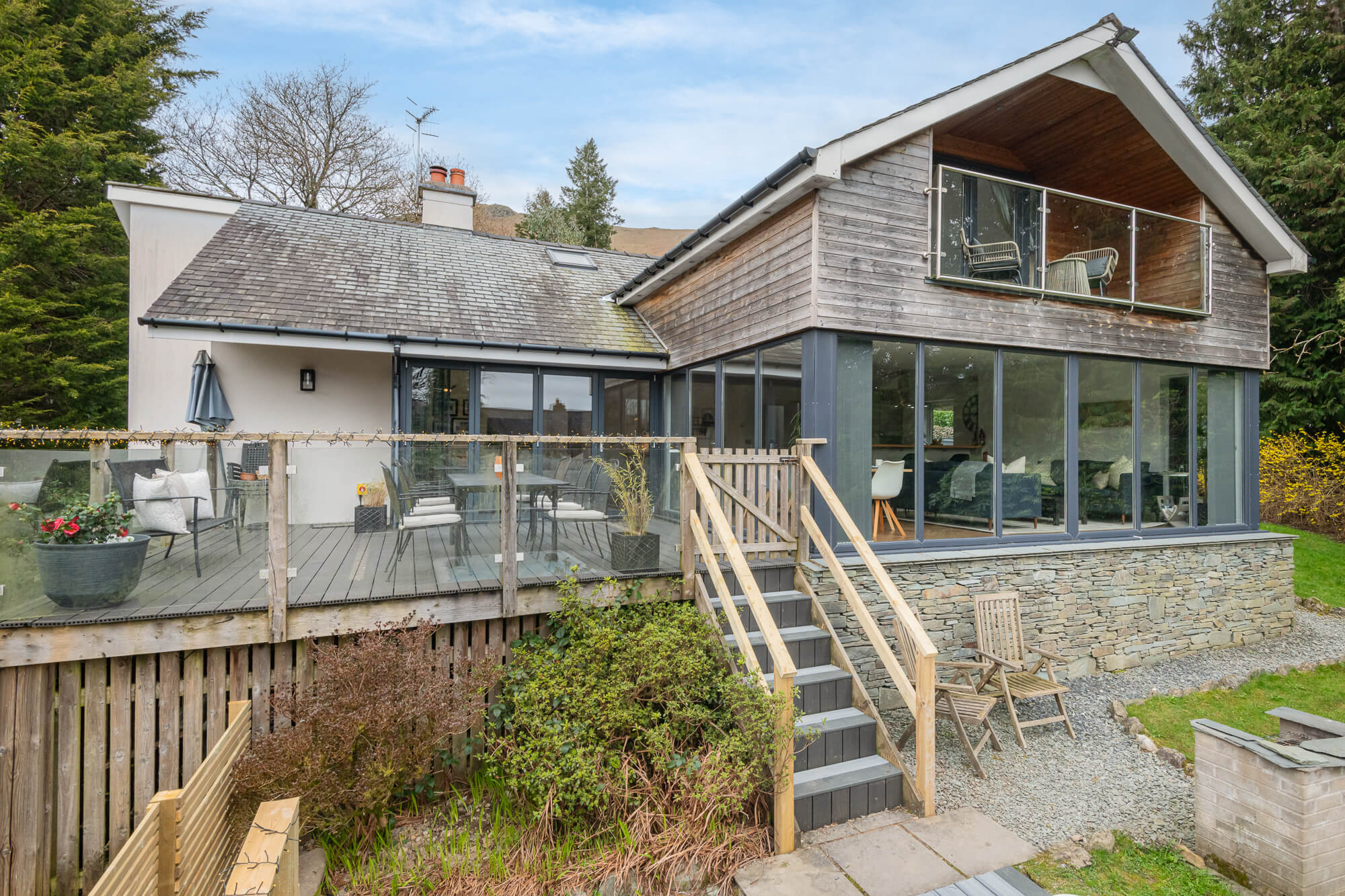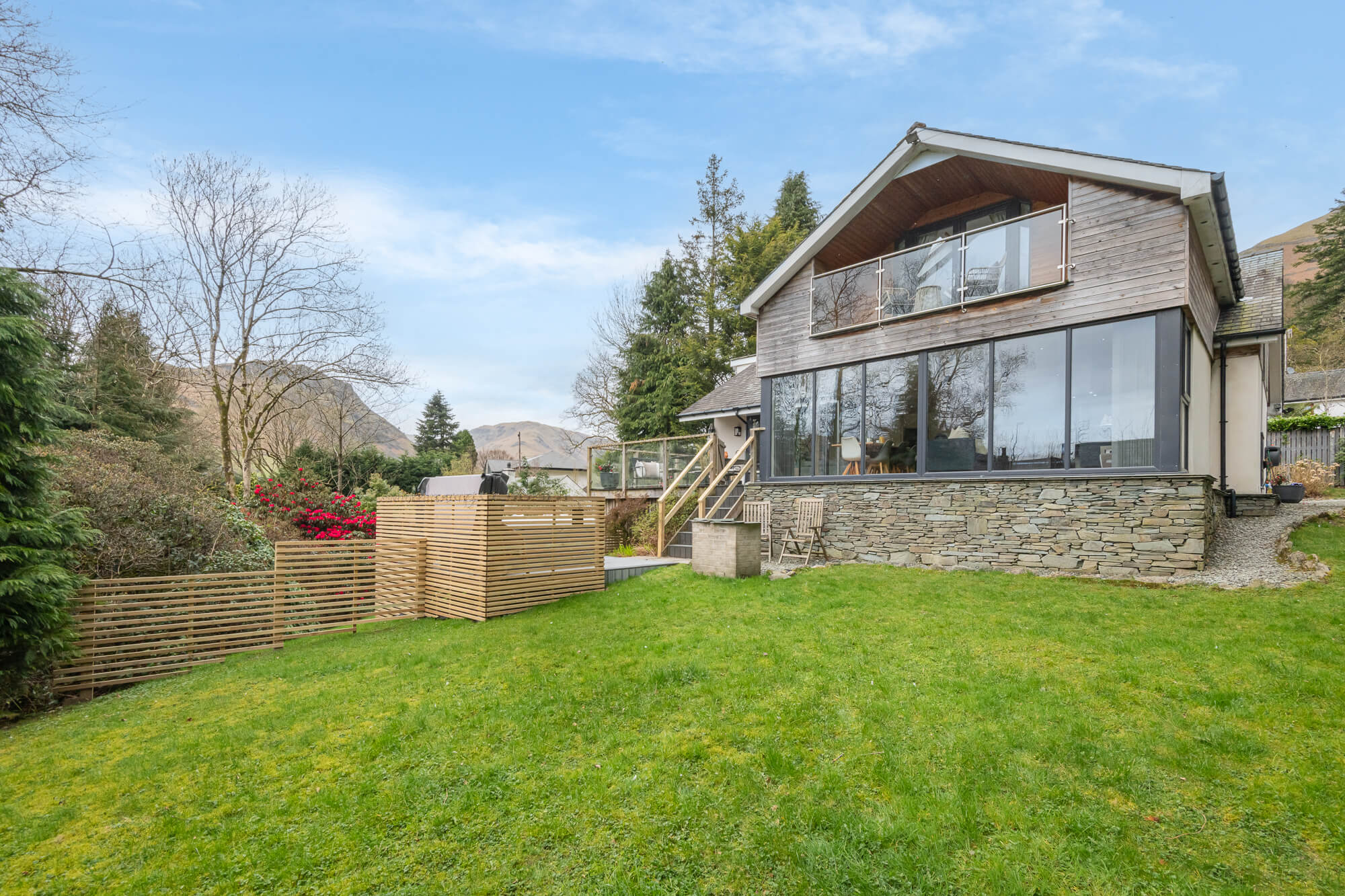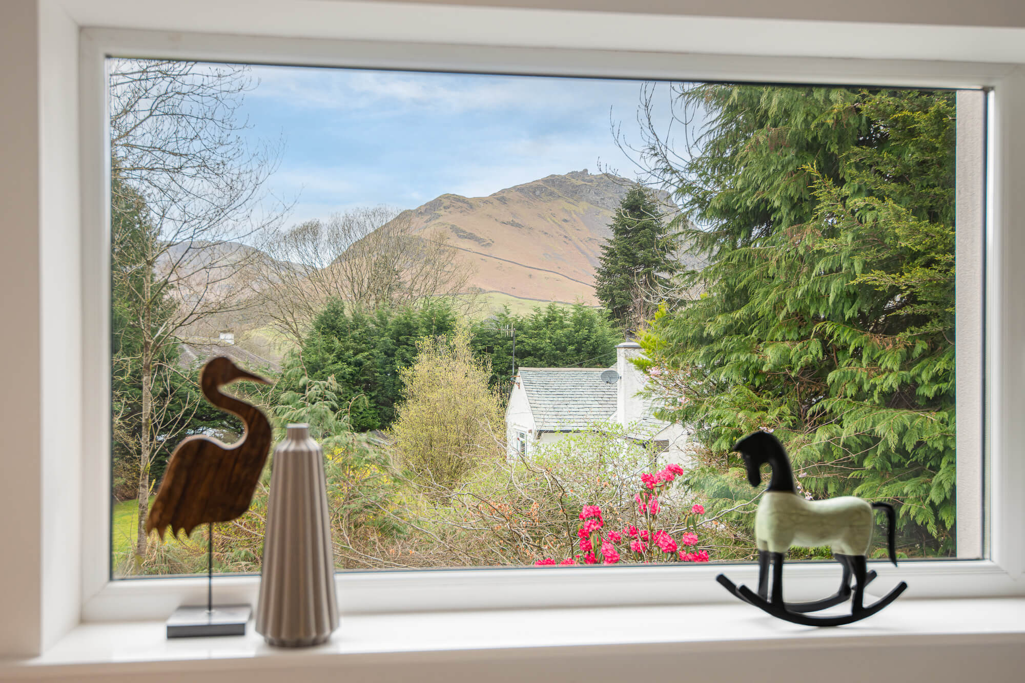 Set in the heart of Grasmere, Harrycroft is a home made for spending time together. This stylish, open-plan home enjoys views towards Helm Crag, framed by a multitude of large windows that draw in natural light and connect the interiors to the landscape beyond. Outside, a generous private garden unfolds towards a stream running gently along its edge—creating a setting that feels both spacious and quietly tucked away.