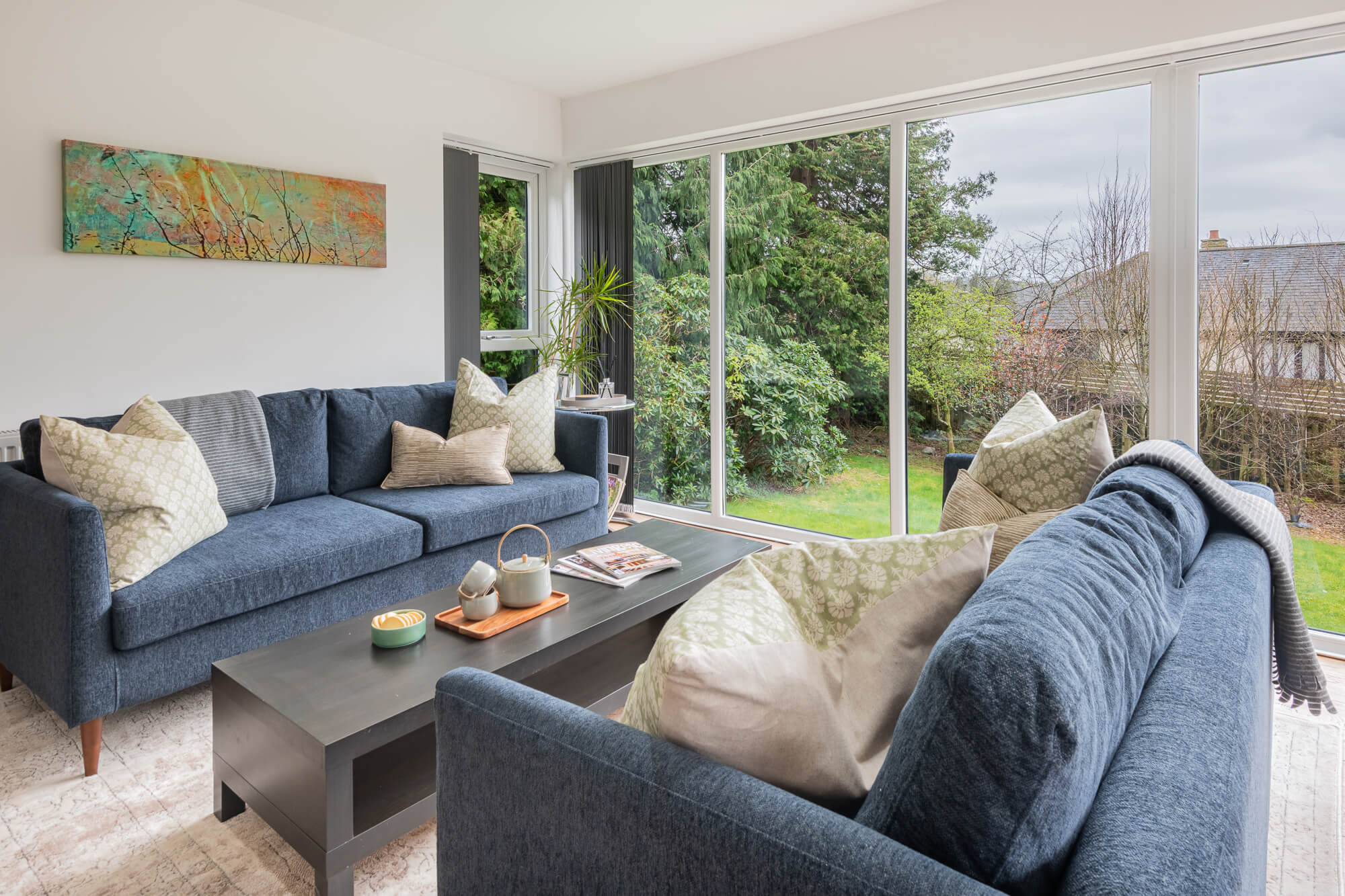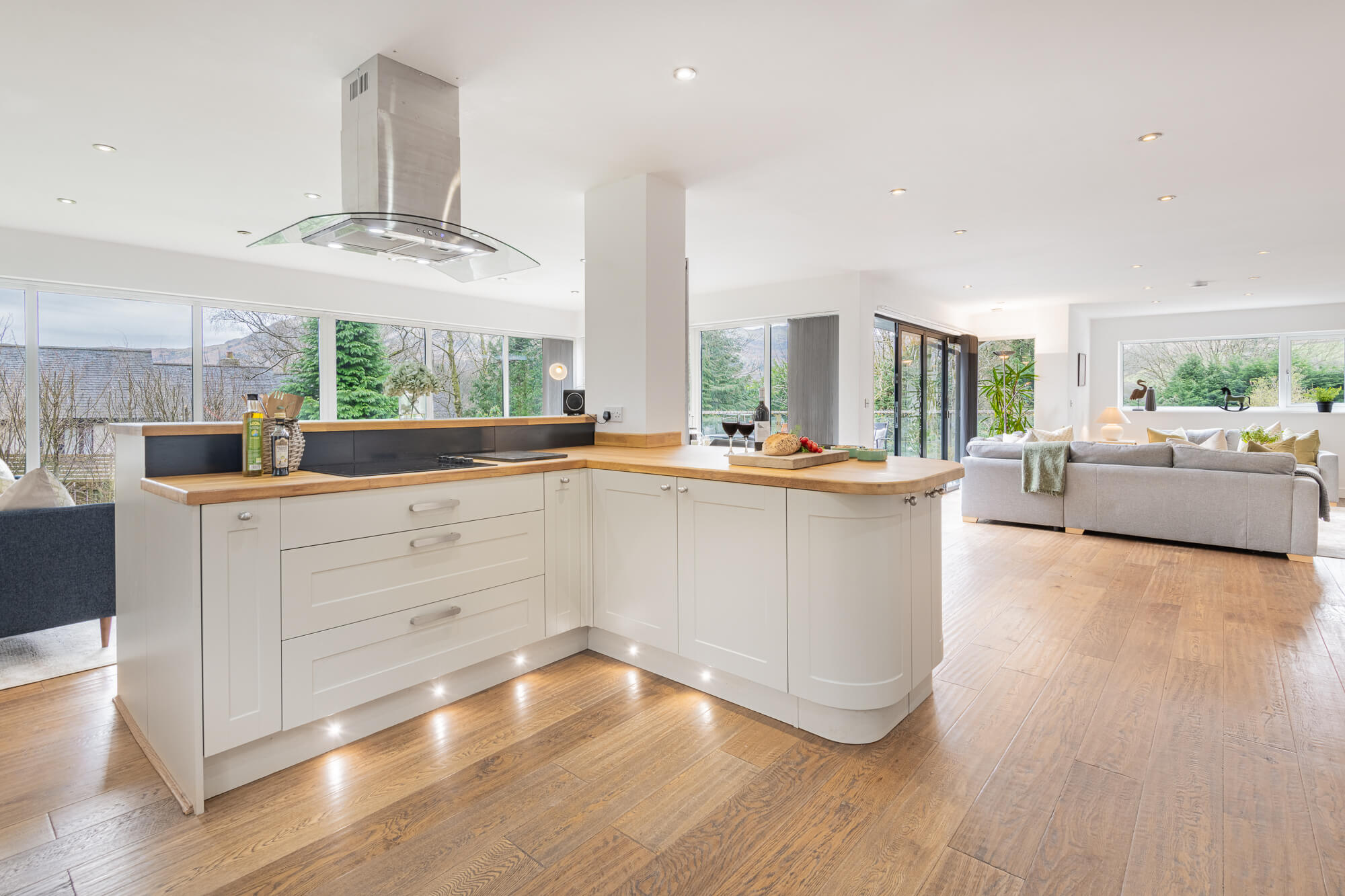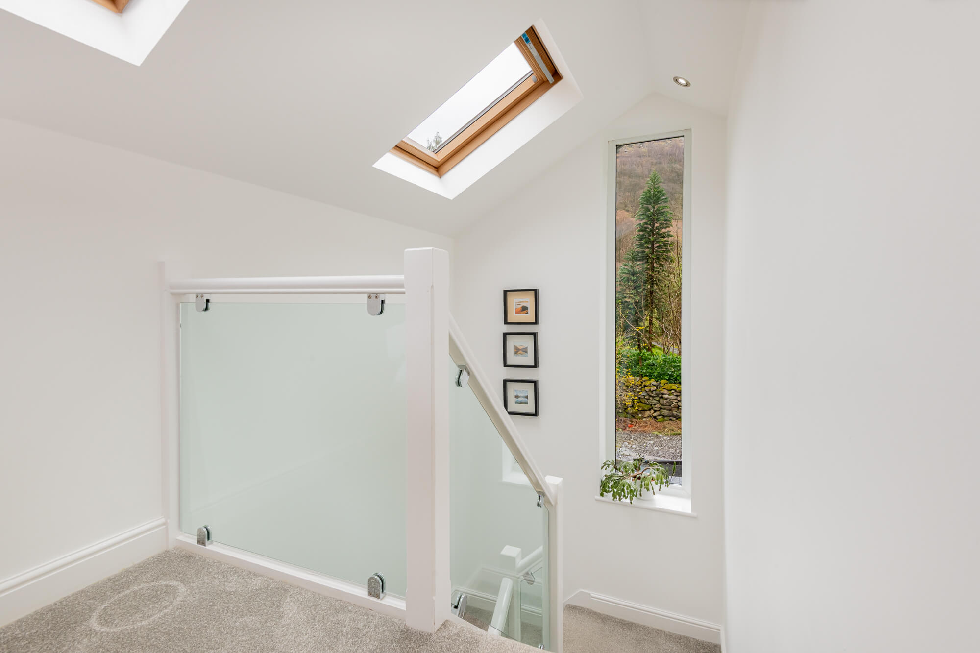 Set in the heart of Grasmere, Harrycroft is a home made for spending time together. This stylish, open-plan home enjoys views towards Helm Crag, framed by a multitude of large windows that draw in natural light and connect the interiors to the landscape beyond. Outside, a generous private garden unfolds towards a stream running gently along its edge—creating a setting that feels both spacious and quietly tucked away.