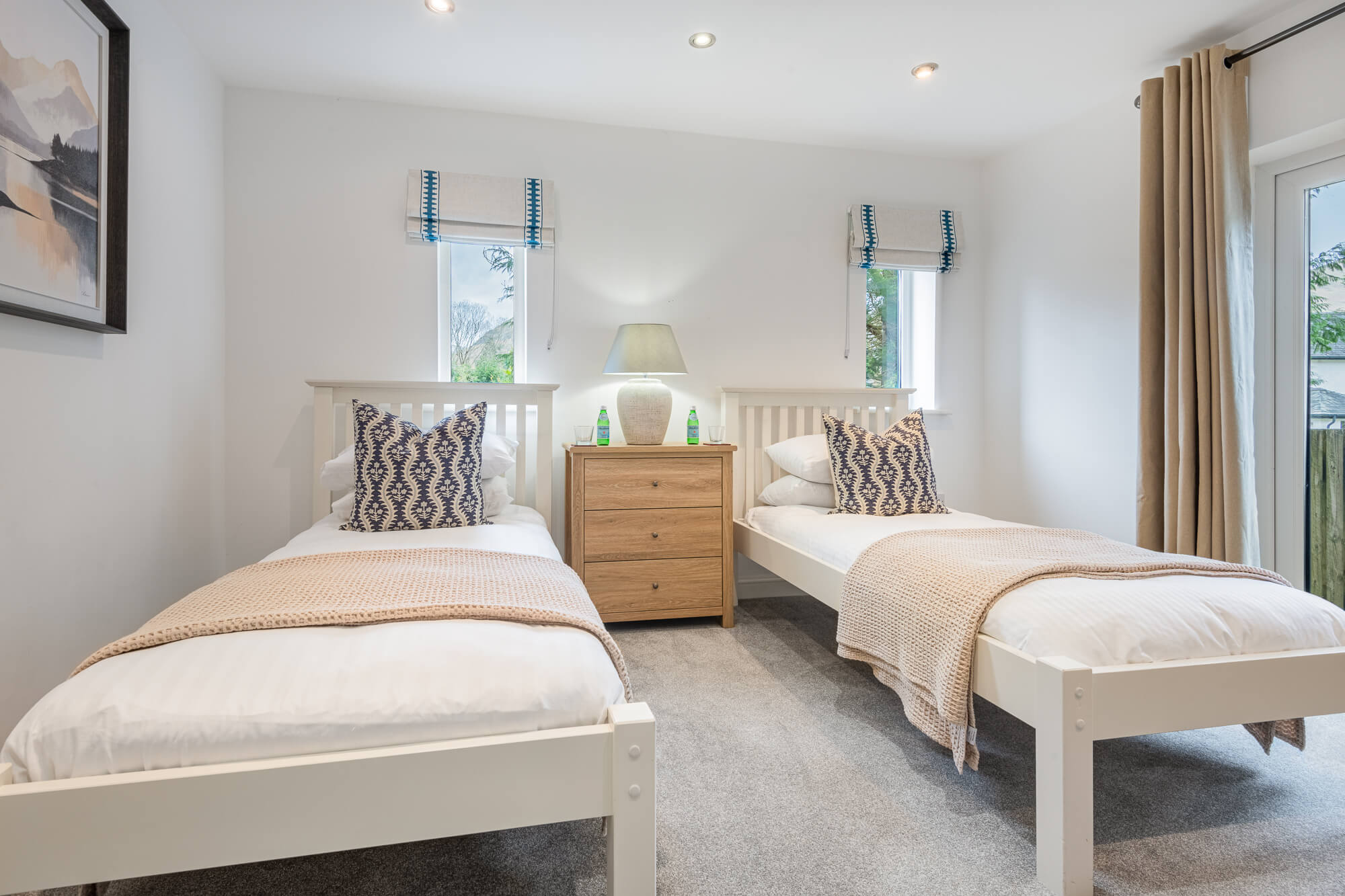 The ground floor consists of well-balanced living and sleeping spaces, including a master en-suite bedroom with TV, a spacious en-suite twin room, and a further stylish double bedroom—creating a layout that works effortlessly for larger groups.