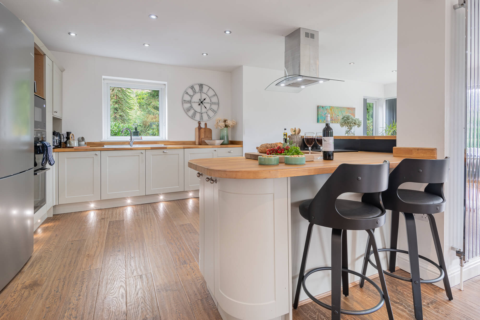 Inside, the house feels calm, considered and effortlessly welcoming. A refined interior design feel runs throughout, with soft tones, natural textures and thoughtful details creating a space that is both elevated and easy to settle into.