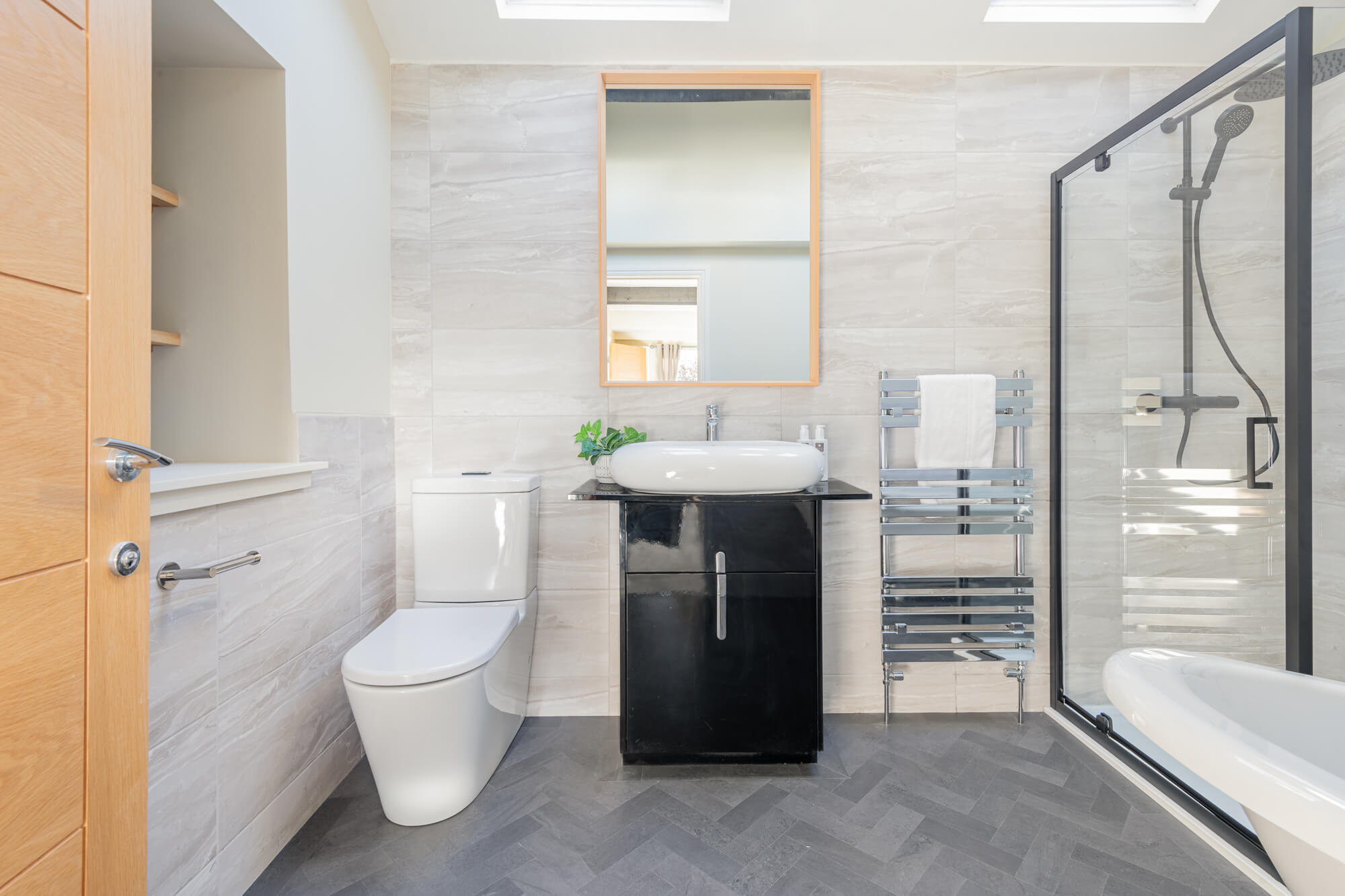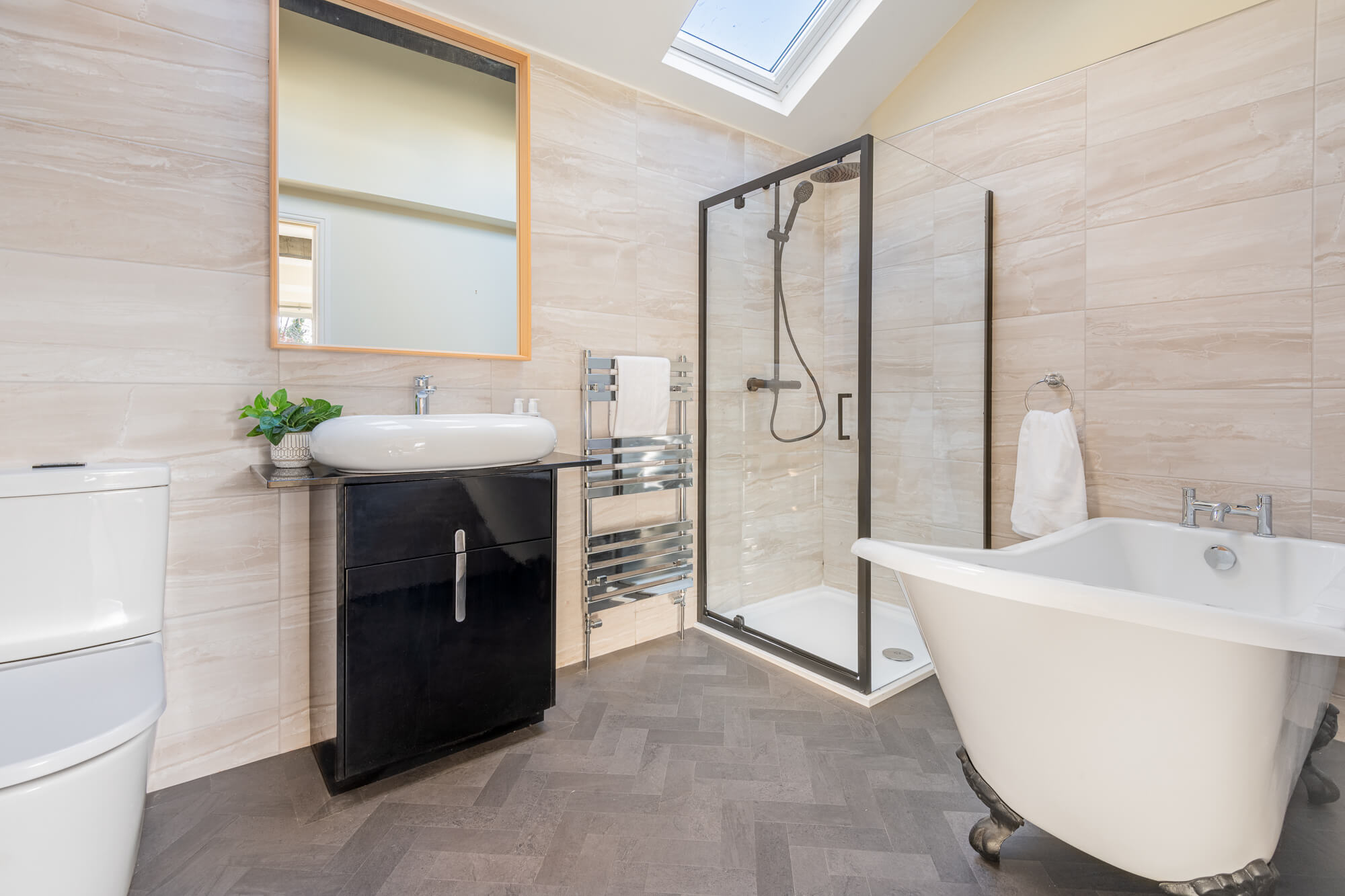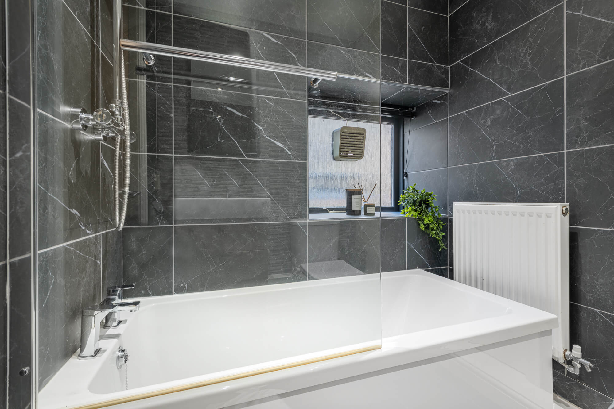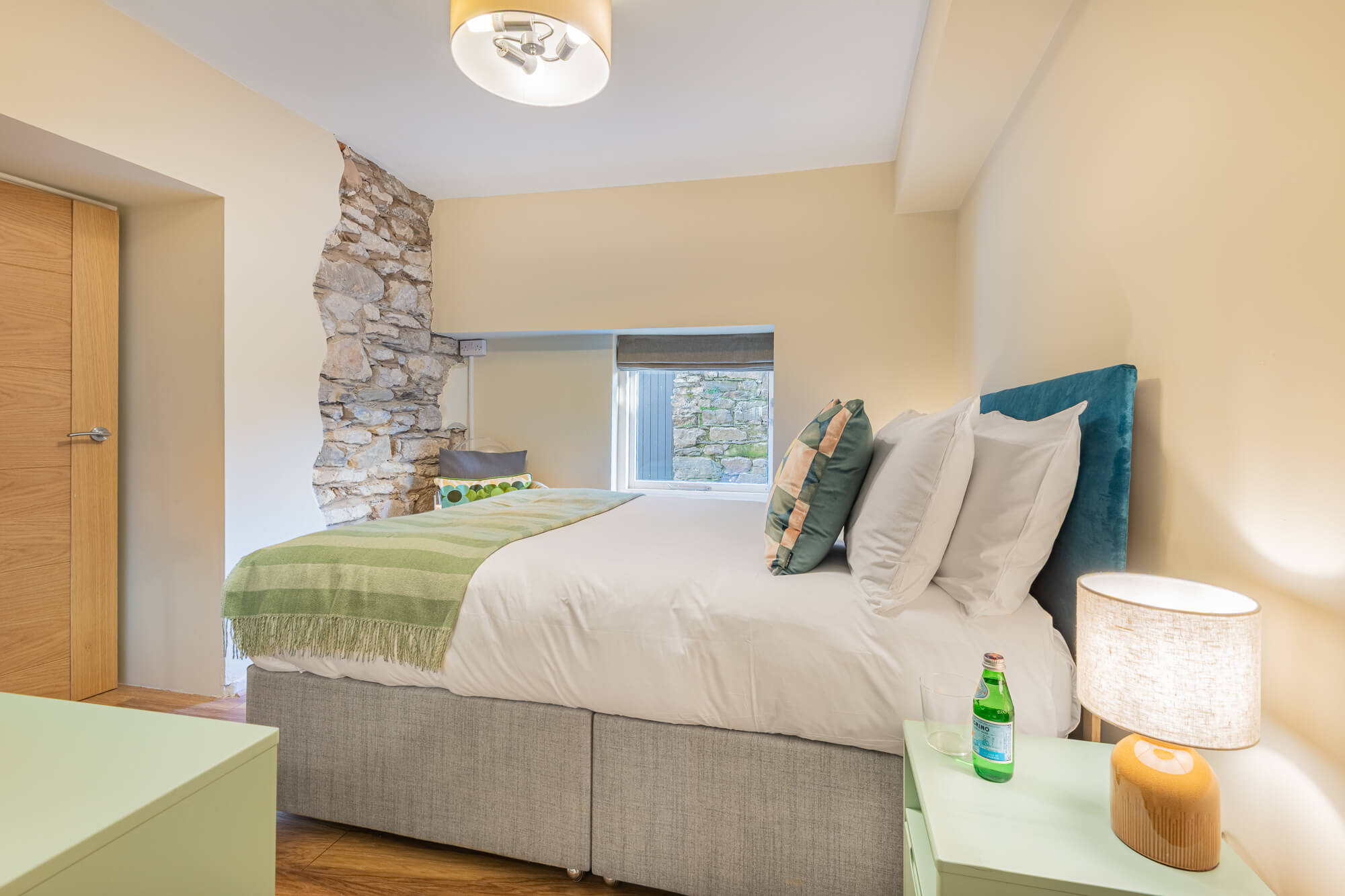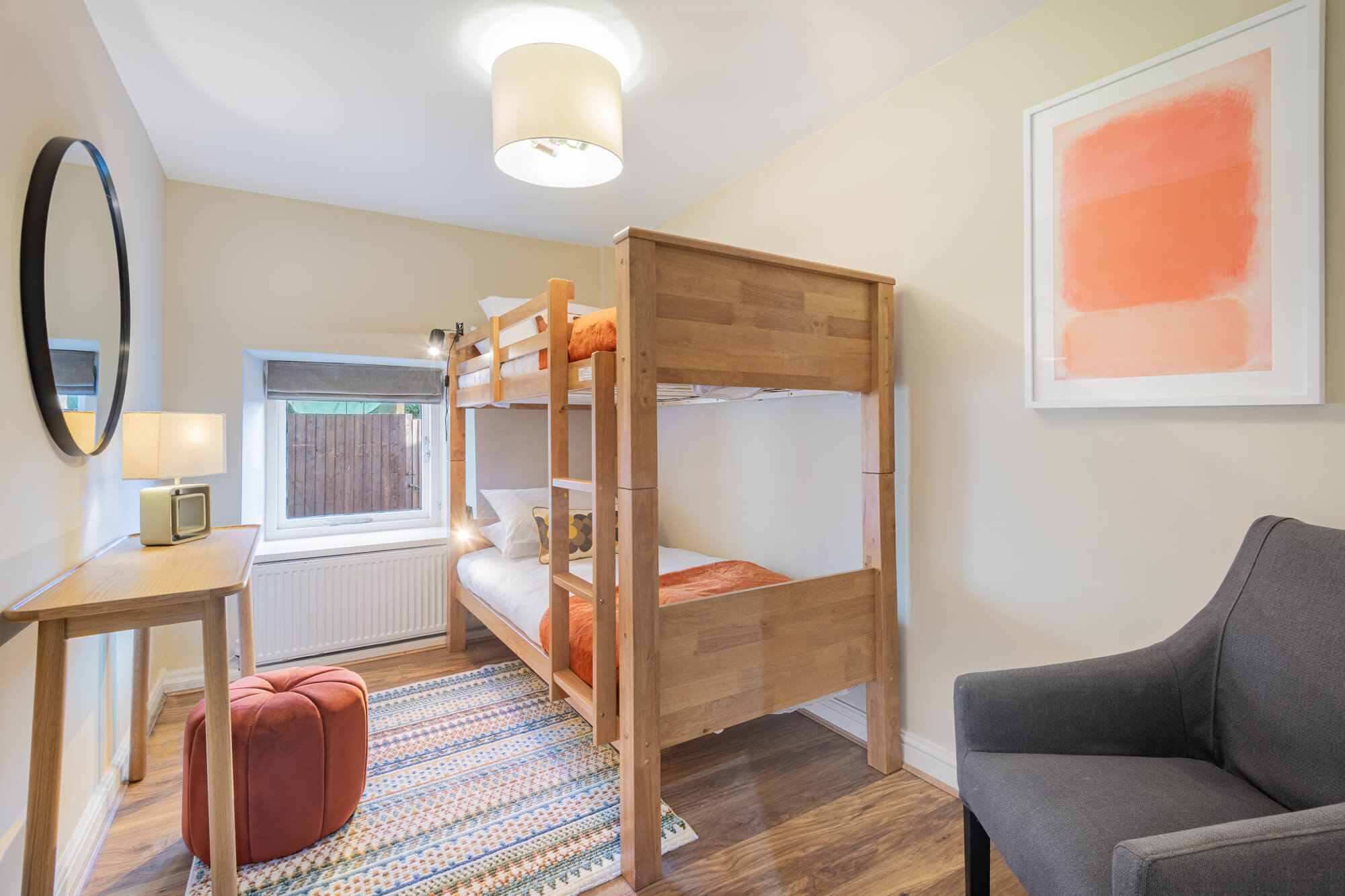 At the end of the hallway, double doors open directly onto the garden from a serene second double bedroom. The soothing palette continues here, while the boutique-style ensuite offers a deep bath for long, relaxing soaks and a spacious shower to revive you before new adventures. The third double bedroom exudes a gentle, Scandi-meets-Lakeland warmth, perfect for quiet moments or leisurely lie-ins, while the bunk room captures the magic of childhood holidays, with siblings, cousins or friends sharing stories well past lights-out. Nearby, a spacious family bathroom includes a deep bath and rainfall shower, ideal for post-walk soaks or calming bedtime routines.