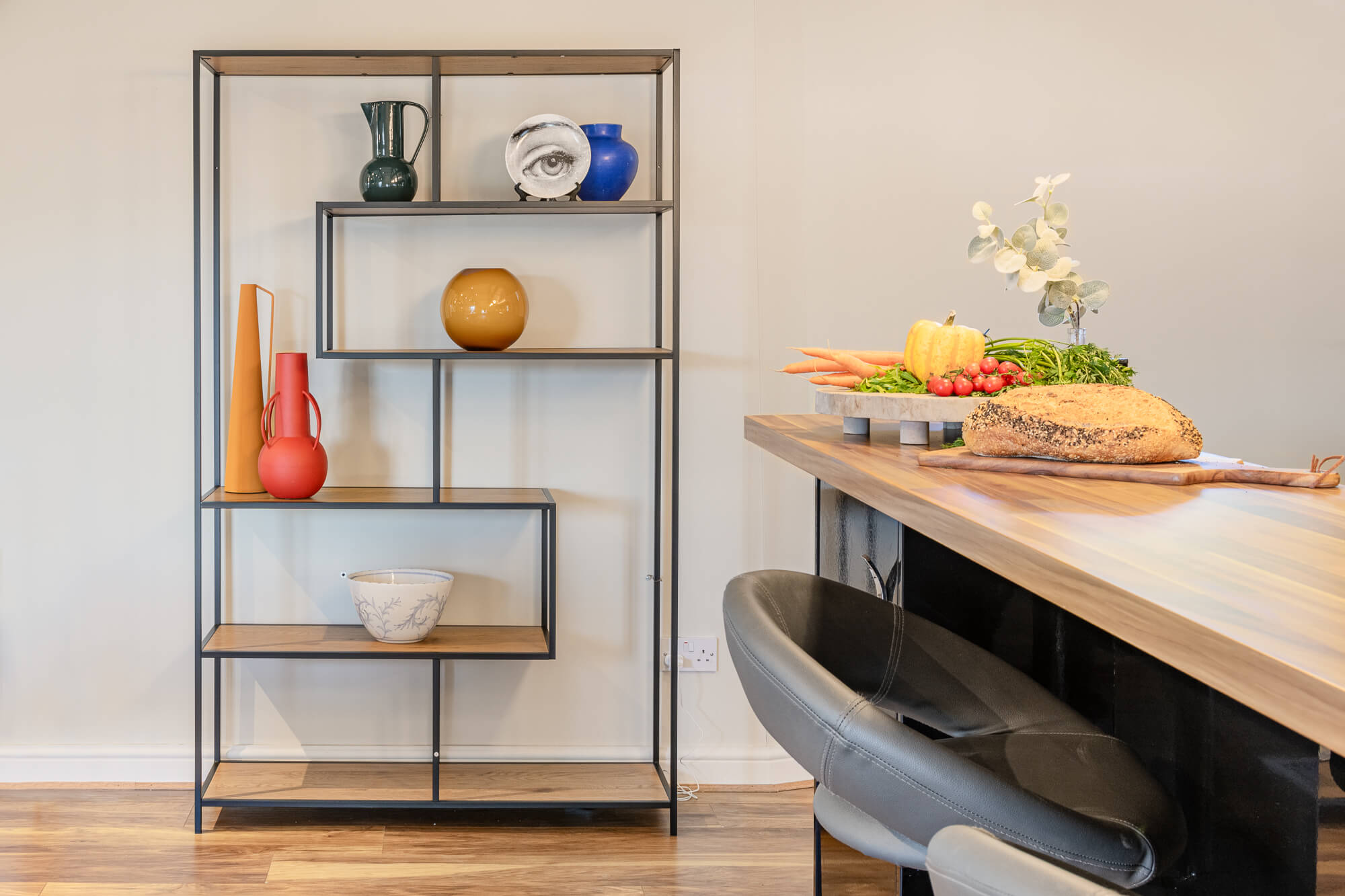 Drop your bags, choose your bedroom and drift upstairs to the main living space. Mornings begin slowly here, with fresh coffee brewing at the breakfast bar as you plan your adventures. You might leaf through guidebooks, browse café reviews, or prepare a simple breakfast sourced from the award-winning butchers in nearby Grange and Ulverston. Practical features ensure a stress-free stay, from a utility area equipped with washer, dryer and an extra fridge, to generous pantry shelves welcoming irresistible finds from Unsworth’s Yard. The wine cooler stands ready for bottles from Oscar’s or Unsworth’s brewery.