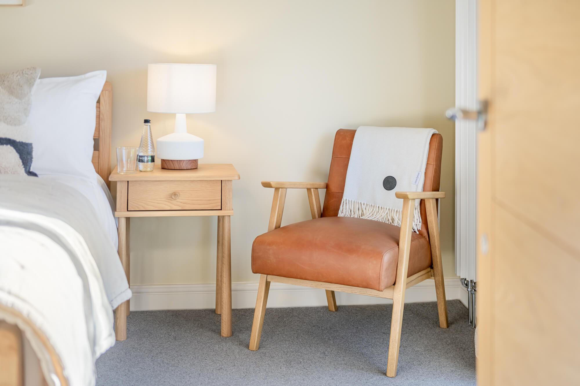 Outside, the private garden provides a gentle start to the day, with rattan seating and a picnic table offering relaxed places to enjoy your first coffee in the morning air. On warm summer evenings you might even experience the village’s signature charm, with a friendly hand passing a pint over the fence from the neighbouring beer garden.