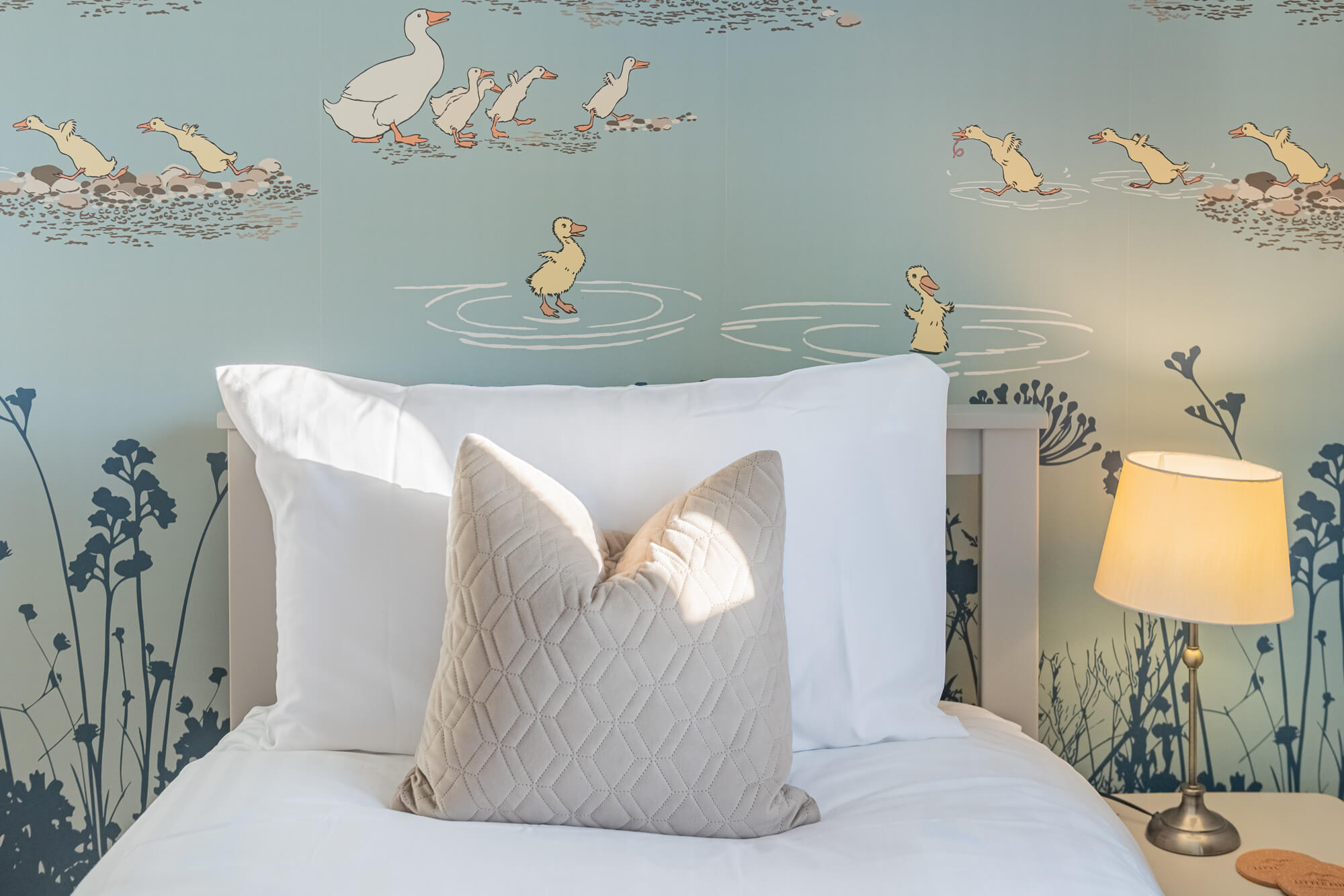 Further along the landing awaits the much-loved children’s bedroom—though its charm appeals to all ages. With a bunk bed, a single with trundle, a teepee reading nook and playful farm-themed wallpaper, the room comfortably sleeps up to four and captures that magical “holiday sleepover” feeling. A travel cot is available on request.
